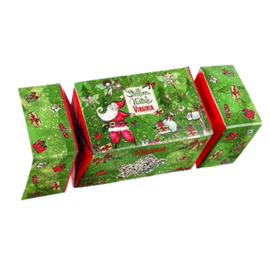 A festive Christmas cracker filled with chocolate covered star-shaped cookies. Great for sharing with friends and family.