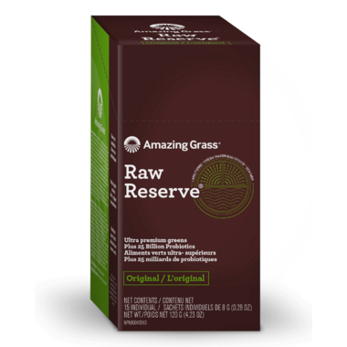 Amazing Grass Raw Reserve is a blend of AFA’s, spirulina, chlorella and sea vegetables from the coast of Maine, like kelp and sea lettuce. Offering an array of free radical fighting plants and herbs, each ingredient in Raw Reserve is completely raw, vegan and of the highest quality. Plus, each serving contains over 25 billion live probiotics at the time of packaging. Nothing short of Amazing, Raw Reserve is a testament to the incredible power of nutrition.