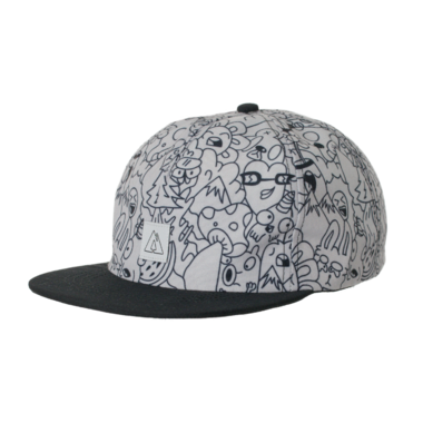 The Cassius kids' hat is a 5-panel hat with original hand drawn artwork on a soft quick-drying microfiber fabric. An adjustable snapback closure allows for multiple size adjustments. Made with 100% recycled poly fabric and Fair Trade made in Nepal.