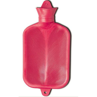 This water bottle can hold up to 2 quarts (2000cc) of water. It's made from molded red rubber with an embossed surface and leak-proof seal.