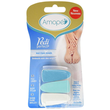 The Amope Pedi Perfect Nail Care Device Replacement Nail Care Heads come with a refill of all 3 nail care heads: file, buff, and shine.