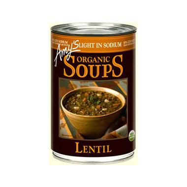 Amy's Kitchen Organic Lentil Soup is light in sodium, containing 290mg of sodium compared to 640 mg in Amy's regular Lentil Soup.