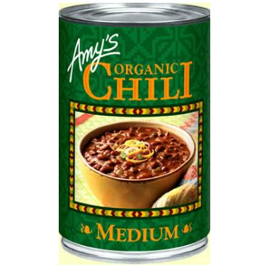 Amy's Organic Chili is a medium chili, made from organic red beans and tofu, in a flavorful Mexican sauce, for those who want the taste of chili, with a bit of heat.