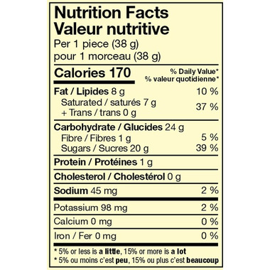 Ingredients: Coconut, fondant (sugar, corn syrup, invert sugar), dark chocolate coating (sugar, palm kernel oil, cocoa (processed with alkali), nonfat milk powder, palm oil, soy leicthin (an emulsifier, vanilla). Contains 1% or less of salt, natural and artificial flavours, invertase, modified food starch, dried egg whites, yellow 5, blue 1, sodium metabisfulfate (a preservative).