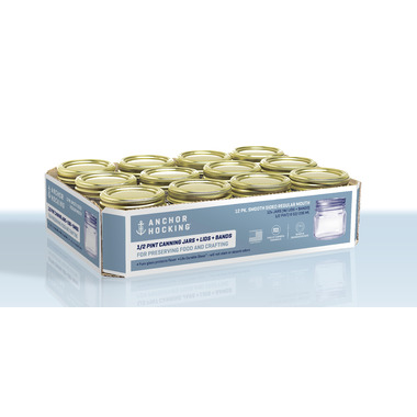 Anchor Hocking 1/2 Pint Home Canning Jars + Metal Lids and Rings