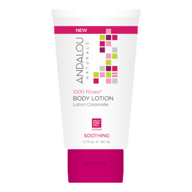 The ANDALOU naturals 1000 Roses Soothing Body Lotion is now in a convenient travel size.