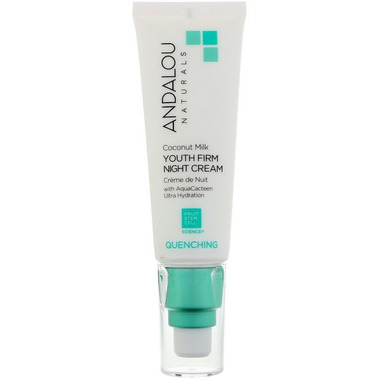 ANDALOU naturals Coconut Milk Youth Firm Night Cream is a satiny night cream with coconut milk amino and essential fatty acids.  It deeply hydrates, fortifies, softens, and conditions improving the appearance of skin tone and texture for a healthy, smooth complexion.