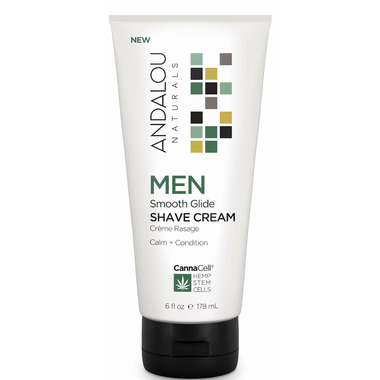 ANDALOU naturals MEN Smooth Glide Shave Cream is a lubricating shave cream is a game-changer with CannaCell® antioxidants, organic hemp seed oil and soothing aloe vera for effortless glide against nicks, cuts and irritation, as the semi-transparent cream allows for easy navigation.