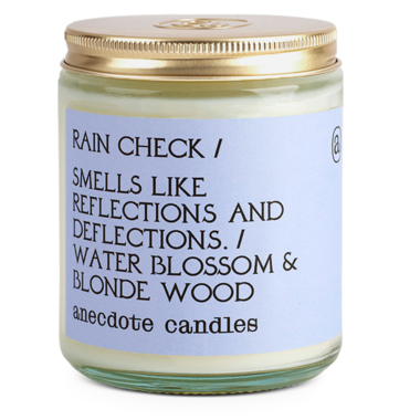 Whether your plans were canceled or you planned on canceling, burn this candle when you want a nice indoor retreat. A soft mist of lotus, petitgrain, and thermal waters float above a dewey medley of agave and violet mist. A fresh base of cyclamen and musky palm lingers after the rain.