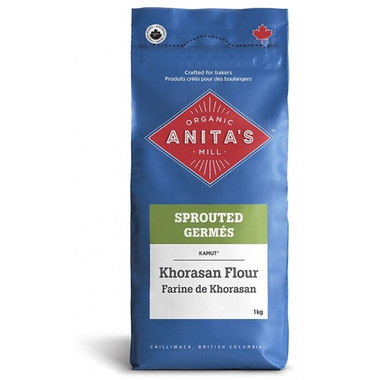 Sprouted Kamut Khorasan- Flour made from sprouted grain has been ground from a living plant, not the seed. The sprouted grain is dehydrated and milled at a low temperature to preserve newly formed enzymes, making its living nutrition bio-available. This ancient grain artisan flour is well suited to many baking applications, such as muffins, cookies, flat and rustic breads and pancakes.