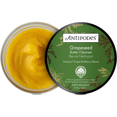 This sleek, minimalist preparation is an enchanting blend of nourishing cacao butter with soothing olive and harakeke oils. Featuring revolutionary Vinanza Grape from New Zealands sauvignon blanc grape seeds. Soothing lavender and blue chamomile partner to help calm sensitive skin as well as refresh and cleanse, while hibiscus bloom has gentle exfoliating action. Helps balance oil production and also boost dry and thirsty skin.