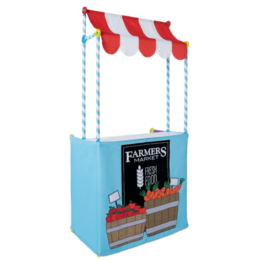 • Includes 1 Farmer's Market Cover with fabric awning, counter top, write and erase sign, striped pole sleeves, and build booklet