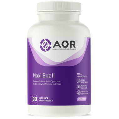 AOR Maxi-Boz II  is standardized Boswellia serrata extract (Frankincense), a botanical with a long historical usage in traditional Ayurvedic medicine for support in inflammatory conditions. Boswellic acids are the key triterpene phytonutrients which are responsible for Boswellia’s ability to help relieve pain and swelling associated with osteoarthritis of the knee.