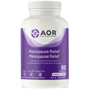 Menopause Relief contains fenugreek husk seed extract, which studies show help support post and peri-menopausal discomforts and helps to support healthy estrogen balance. Helps relieve symptoms associated with menopause such as hot flashes, night sweats, interrupted sleep pattern/insomnia, irritability, and joint and muscular discomfort thereby supporting quality of life. Menopause Relief also contains Affron a registered brand of saffron that helps to support mood balance. Affronή helps to relieve restlessness and/or nervousness and helps to reduce the symptoms of perceived stress, such as fatigue, weariness and irritability