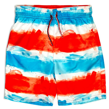 Red, White, and Beach time! Mid-length swim trunk made to adhere to all