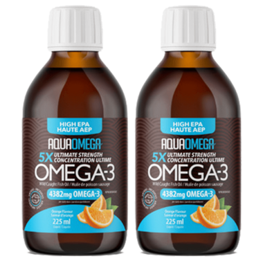 - 2x AquaOmega High EPA Omega-3 Fish Oil Orange, 225mL