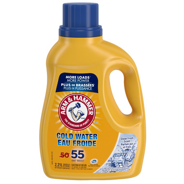 ARM & HAMMER Cold Water Liquid Laundry Detergent is designed to power out dirt and odours in low temperatures with a new concentrated formula, giving more loads per bottle. Washing in cold water can not only help lower your energy bills, but can also help clothes last longer by reducing fading and shrinkage. This liquid laundry detergent harnesses the pure, freshening power of ARM & HAMMER Baking Soda. This detergent is specially formulated for todays regular washers and technologically advanced and environmentally friendly High Efficiency (HE) washers.