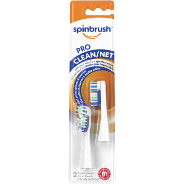 Spinbrush pro series daily clean replacement heads feature dual-action technology. A combination of spinning and side-to-side brushing heads for the ultimate in cleaning. They remove up to 70% more plaque in hard-to-reach places than a manual brush* with micro-cleaning bristles. The green colour-wear bristles fade when it's time to change the head. Power up today for a cleaner, fresher and more radiant smile than ever before with spinbrush.