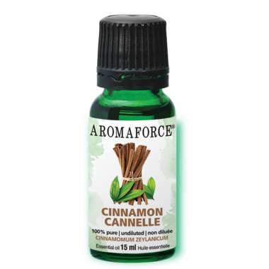 Aromaforce Cinnamon Essential Oil (Cinnamomum zeylanicum) is steam distilled from the leaf and has a bold, warm and spicy fragrance.