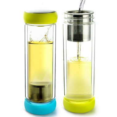 The Asobu Twin Lid Double Wall Glass Tea Infuser Bottle is a combination of modern art and functional design. The double wall bora silicate heat resistant glass, keeps the inner wall hot and the outer wall cooler. The leak proof colourful lids, make it a pleasure to use even when you are in a rush.