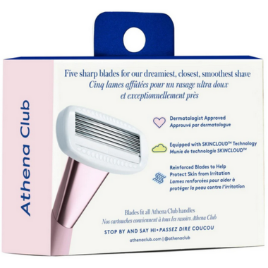 Ready for a refill? Athena Clubs Blade Refills feature 5 perfectly-spaced stainless steel blades, each coated in nourishing shea butter and hydrating hyaluronic serum.