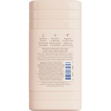 Propylene Glycol (Biobased), Water (Eau), Sodium Stearate, Fragrance (Parfum), Silica, Glycerin, Saccharomyces Ferment Filtrate, Diatomaceous Earth, Propanediol, Polyglyceryl-10-caprylate, Polyglyceryl-4 Laurate/succinate, Ethylhexylglycerin, Tapioca Starch, Sorbitan Oleate Decylglucoside Crosspolymer, Sorbitan Stearate, Behenyl Alcohol, Simmondsia Chinensis (Jojoba) Seed Oil*, Glycerin*, Cocos Nucifera (Coconut) Liquid Endosperm, Chamomilla Recutita (Matricaria) Flower Extract*, Cocos Nucifera (Coconut) Oil*, Camellia Sinensis Leaf Extract*, Cocos Nucifera (Coconut) Fruit Juice.