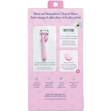 Athena Clubs Razor Kit has been designed, tested, and retested for how people actually shave. The innovative, curve-loving, body-knowing razor features five spaced-out blades, a built-to-last aluminum handle coated with non-slip silicone, and a moisturizing hyaluronic acid serum strip to prevent bumps, razor burn, and irritation. In addition to providing an upgraded shaving experience, the Razor Kit boasts an innovative, unique design that is sure to elevate your bathroom's setting.
