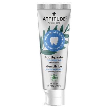 Whiten your smile naturally with ATTITUDE Adult Whitening Toothpaste with fluoride.