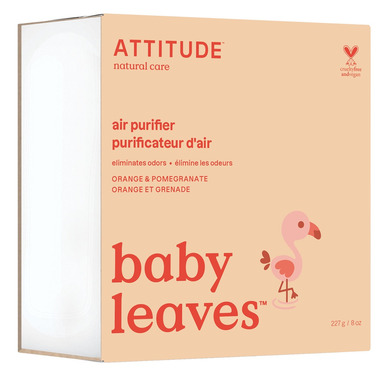 ATTITUDE Baby Leaves Air Purifier is safe and effective. Your baby spends on average up to 16 hours daily indoors, so it’s important to keep the ambient air as pure and refreshing for you and your baby. This product features activated carbon, a natural highly-absorbent charcoal that will purify indoor air of stubborn odours and contaminants, while gently releasing a natural delightful orange and pomegranate scent that can last up to six weeks (depending on room size).