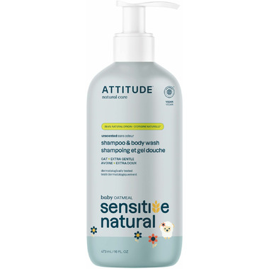 ATTITUDE's 2-in-1 shampoo and body wash for babies and sensitive skin is designed for newborns with exceptionally delicate skin. ATTITUDE's reassuring sulfate-free formula is designed to help you care for their especially sensitive skin. It's made with natural ingredients, like colloidal oatmeal, that soothe dry or irritated scalps and sensitive skin. Plus, this gentle fragrance-free body wash and mild shampoo is EWG VERIFIED.