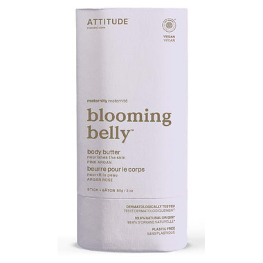 ATTITUDEs solid pregnancy body butter offers luxurious and nourishing care. Specially formulated for moms seeking a product to gently improve the texture of their skin, it contains 99.6% naturally sourced ingredients. content and its soothing and softening properties. Whether youҒre pregnant or you just want to give your skin a little more love, this EWG VERIFIED, dermatologically tested, cruelty-free, vegan and biodegradable body butter is the perfect addition to your care routine. Carefully packaged in an innovative zero-plastic, biodegradable cardboard tube. Youْll love its subtle rose and argan oil fragrance!