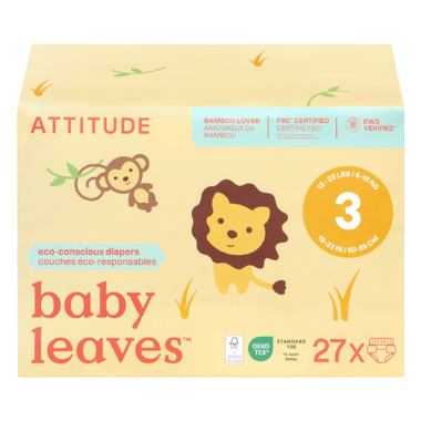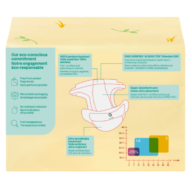 Fear no more leaks, with ATTITUDE's new vegan eco-conscious disposable diapers, which offer optimum absorption and keep baby dry. Their EWG Verified certification is a guarantee of total transparency on ingredients and manufacturing materials. These diapers are therefore free from contaminants linked to adverse health effects. To protect babies' delicate skin, they have no added fragrances and are OEKO-TEX Standard 100 certified, offering daily confidence. To make no compromise between environmental preservation and performance, the diapers are made from bamboo sourced from FSC eco-managed forests.