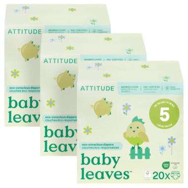 • 3 x ATTITUDE Disposable Unscented Diapers Size 5 (20ct)