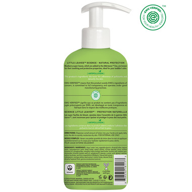 Natural body lotion made with all natural ingredients, derived from plants and minerals only. Enhanced with protective, soothing and antioxidant blueberry leaf and moringa seed extract to protect your little one?s skin. Dermatologically tested and hypoallergenic lotion: suitable for sensitive skin. Free of artificial fragrances: lightly infused with an exotic coconut and watermelon scent. Lightweight formula, non greasy and easy to apply. EWG VERIFIED? and top rated in EWG?s Skin Deep? Cosmetics Database. ECOLOGO Certified: sustainable and biodegradable moisturizer. PETA Certified: 100% vegan with no animal derived ingredients. Awarded the PTPA Seal of Approval: approved and tested by North American parents. Free of PEGs (PEG100 Stearate and PEG40 Hydrogenated Castor Oil) potentially contaminated with cancer causing chemicals. Free of Parabens, Phenoxyethanol, Formaldehyde or Formaldehydereleasers, Benzyl alcohol and MIT, all potentially harmful preservatives. Free of BHA, BHT, Phthalate and Triclosan, all identified as potential endocrine disruptors by EWG.