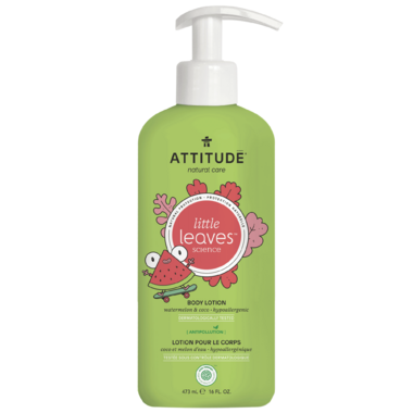 What does our skin need in return for all the wonderful things it does for us? Some tender loving care! No matter how fast they grow, keep your kids’ skin smooth and supple with ATTITUDE little leaves™ Body Lotion – Coconut and Watermelon.