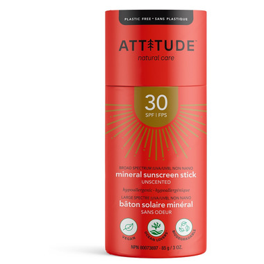 Attitude created a range of sunscreen sticks that feature an innovative biodegradable cardboard applicator following their engagement to reduce single use plastic in everyday lives. This premium on-the-go stick, glides on smoothly to offer the same great sun protection as our other sunscreens with a practical mess-free on-the-go format.