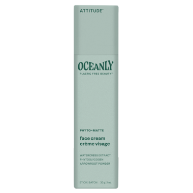 Goodbye shine, hello unified skin tone! Made with mattifying and sebum-absorbing arrowroot powder, the PHYTO-MATTE face cream stick lets you achieve a flawless makeup base. Its EWG approved ingredients, like age-fighting phytoglycogen and revitalizing watercress extract, help restore a healthy and radiant complexion. PHYTO-MATTE fragrance-free face cream from Oceanly's plastic-free ATTITUDE range comes in biodegradable paper tube packaging from sustainably managed forests to stabilize skin while caring for the environment.