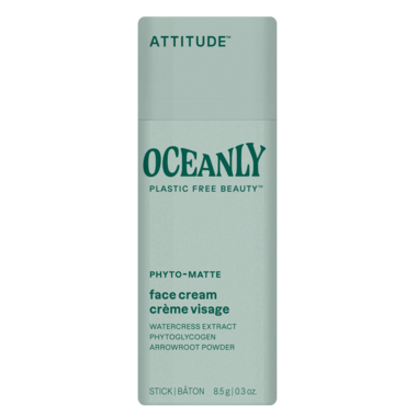 Goodbye shine, hello unified skin tone! Made with mattifying and sebum-absorbing arrowroot powder, the PHYTO-MATTE face cream stick lets you achieve a flawless makeup base. Its EWG approved ingredients, like age-fighting phytoglycogen and revitalizing watercress extract, help restore a healthy and radiant complexion. PHYTO-MATTE fragrance-free face cream from Oceanly's plastic-free ATTITUDE range comes in biodegradable paper tube packaging from sustainably managed forests to stabilize skin while caring for the environment.