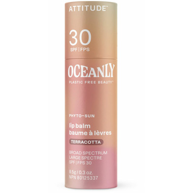 Discover ATTITUDE'S new Terracotta SPF 30 lip balm, enriched with naturally-sourced ingredients such as phytoglycogen to revive skin radiance, seaweed extracts with revitalizing properties and vegan collagen-like for a hydrated skin. This multi-benefit lip care product protects lips from UVA and UVB rays without leaving white marks or a greasy, sticky feel, thanks to non-nano zinc oxide, a mineral sunscreen. Available in three shades: Baby Rose, Peachy Shell, and Terracotta, to add a touch of color. EWG VERIFIED™ certified and plastic-free, this vegan lip balm is the perfect finishing touch for ideal sun protection.
