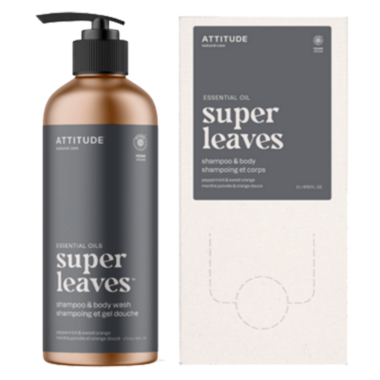 ATTITUDE Peppermint & Sweet Orange Mens Shampoo & Bodywash & Refill Bundle
