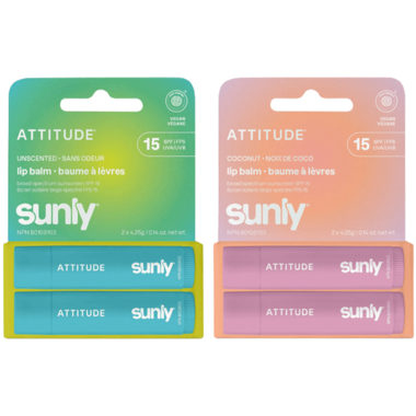 - ATTITUDE Sunly Lip Balm Duo SPF 15 Unscented - 2 x 4.25g