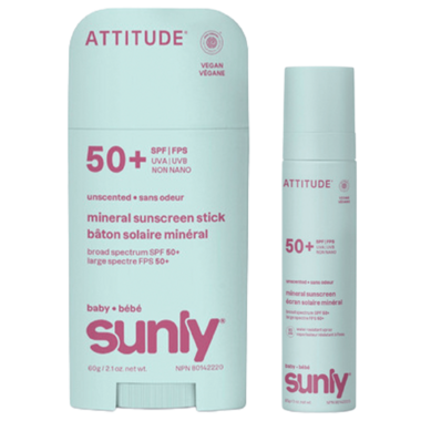 - ATTITUDE Sunly Mineral Sunscreen Face & Body Stick Baby SPF 50 Unscented - 60g