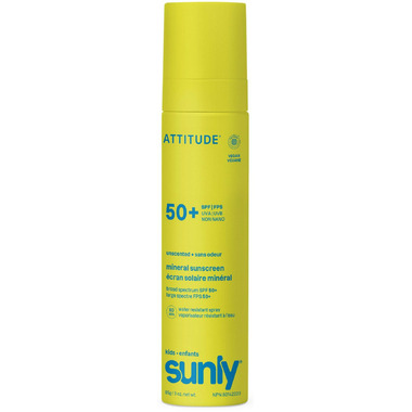 Sunly kids protects your little one's skin. The ATTITUDE SPF 50 sunscreen spray is specially formulated for kids, with non-nano zinc oxide, a mineral filter that forms a physical barrier on your skin, offering broad-spectrum protection against UVA and UVB rays. Water-resistant for 80 minutes, it provides lasting protection even during water activities. EWG Verified and dermatologically tested, its light and fluid texture applies easily on the body and face while leaving a non-greasy, sheer finish. Its precise spray format makes parents’ lives easier, allowing for quick and mess-free application. Unscented, it’s perfect for kids' delicate skin.
