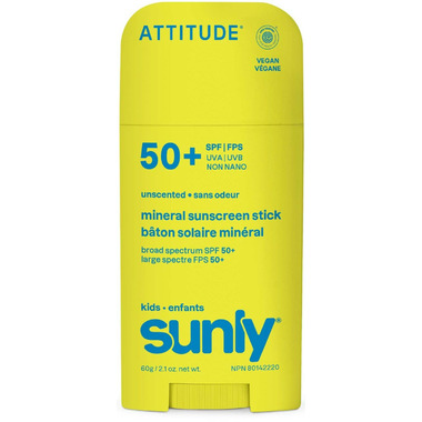 Sunly kids protects your little one's skin.The ATTITUDE SPF 50 sunscreen stick is specially formulated for kids, with non-nano zinc oxide, a mineral filter that forms a physical barrier on your skin, offering broad-spectrum protection against UVA and UVB rays. EWG Verified and dermatologically tested, its lightweight formula glides smoothly onto the skin, leaving a non-greasy sheer finish. Compact and convenient, this on-the-go format can be taken anywhere and applied in one easy swipe to the body and face, perfect for little ones eager to run off and play in the sun! Unscented, it’s perfect for kids' delicate skin.