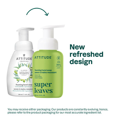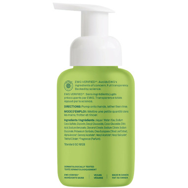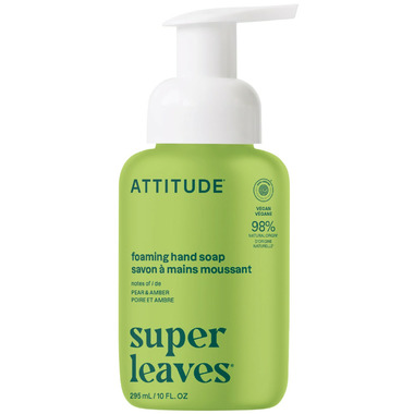 ATTITUDE™ vegan soothing and foaming hand soap gently cleanses your hands. Formulated with 98.7% naturally sourced ingredients* including olive leaves extract to improve the appearance of dry skin and restore its suppleness. EWG VERIFIED™ and dermatologically tested, this soap is enriched with watercress and Indian cress to revitalize skin and keep it healthy. Its creamy lather eliminates impurities and makes hand washing a joy. You'll love a warm fragrance with notes of sweet pear and rich amber.