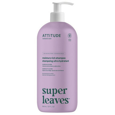 ATTITUDE Super leaves Moisture Rich Shampoo combines the repairing power of quinoa with jojoba proteins, which helps to repair, moisturize and protect the hair. Ideal for dull and dry brittle hair, this shampoo helps to add shine and provide hydration to brittle locks.