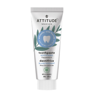 Whiten your smile naturally with ATTITUDE Fluoride Whitening Toothpaste for Adults and take this handy small size wherever you go!