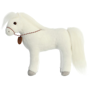 Bring home the elegance of the Arabian breed with the Aurora Breyer 13" Arabian Horse. This plush horse features a soft white coat and comes with a Breyer horseshoe tag, embodying the classic Arabian horse's beauty. Its unique corral packaging with a nameplate adds a special touch, making it an ideal gift for horse enthusiasts and collectors alike. With lock-washer eyes ensuring safety, this plush horse is suitable for all ages, offering both comfort and charm.