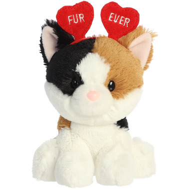 Furever Calico Cat from Aurora's Valentine's Day Collection is a delightful expression of affection and commitment. This plush features a charming calico design with unique heart-shaped ears that lovingly say "FUR EVER," making it a special gift for Valentines Day. Made from high-quality materials for a luxurious feel, it is both durable and huggable, ideal for long-lasting cuddles. Whether as a gift for a significant other or a treasured addition to a plush collection, Furever Calico Cat represents a sweet declaration of love, perfect for anyone who holds a special place in your heart.