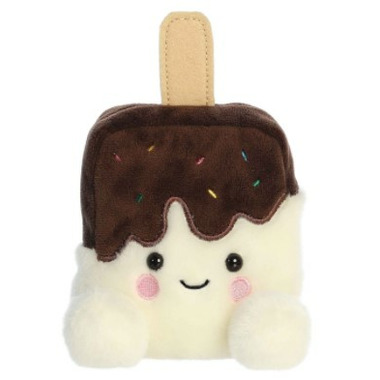 Dolce is a plush treat, designed with a soft, chocolatey exterior sprinkled with colorful bits that mimic the look of real ice cream toppings. A creamy texture frames her adorable face, and her eyes sparkle with the promise of fun and freshness. A wooden stick peeks out completing her charming ice cream bar appearance.